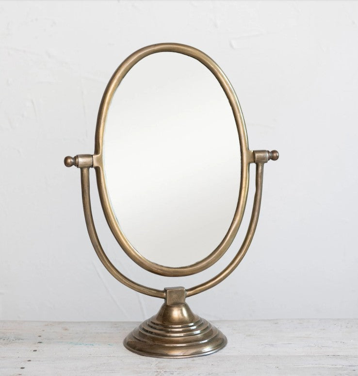 Antique Brass Framed Mirror on Stand