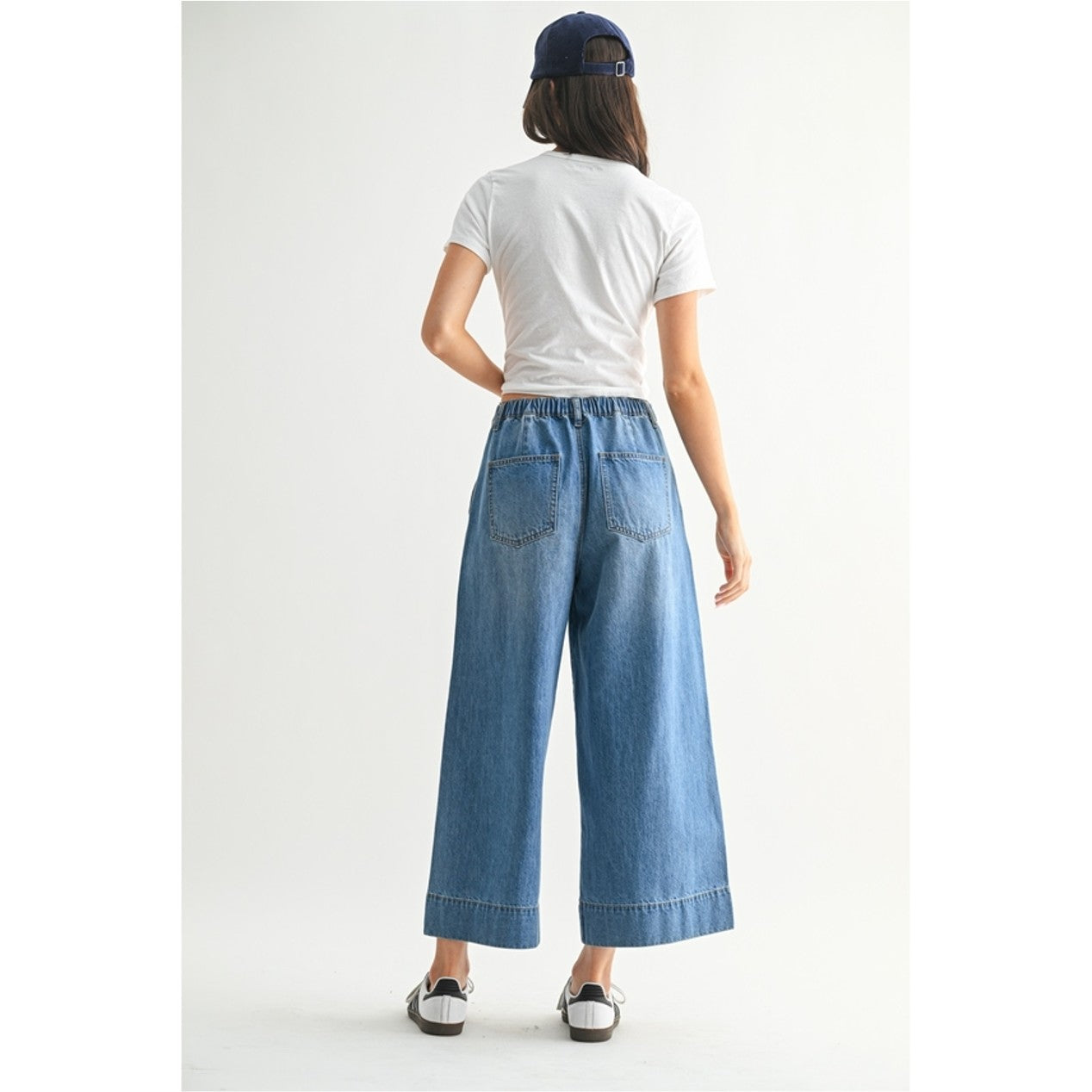 Slip into effortless style with these wide-leg denim pants that strike the perfect balance between comfort and cool. Featuring classic buttons, belt loops for styling flexibility, and an elastic back waistband that moves with you, these pants are designed for all-day wear. Practical side and back pockets keep your essentials within reach. Whether you're dressing them up or keeping it casual, this versatile denim staple deserves a spot in your rotation.