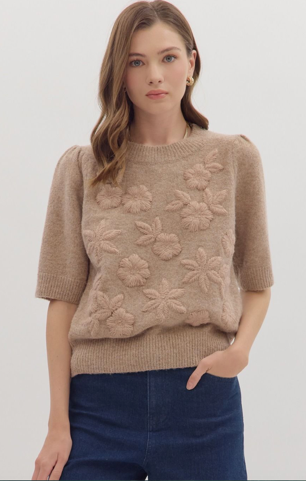 Cozy meets cute in the Devin Sweater, a short puff sleeve knit top that adds a floral flair to your look. With medium-weight fabric that's non-sheer and unlined, it keeps you comfy without any fuss.