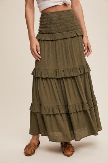 2-Way Smocked Ruffle Tiered Midi Dress or Skirt