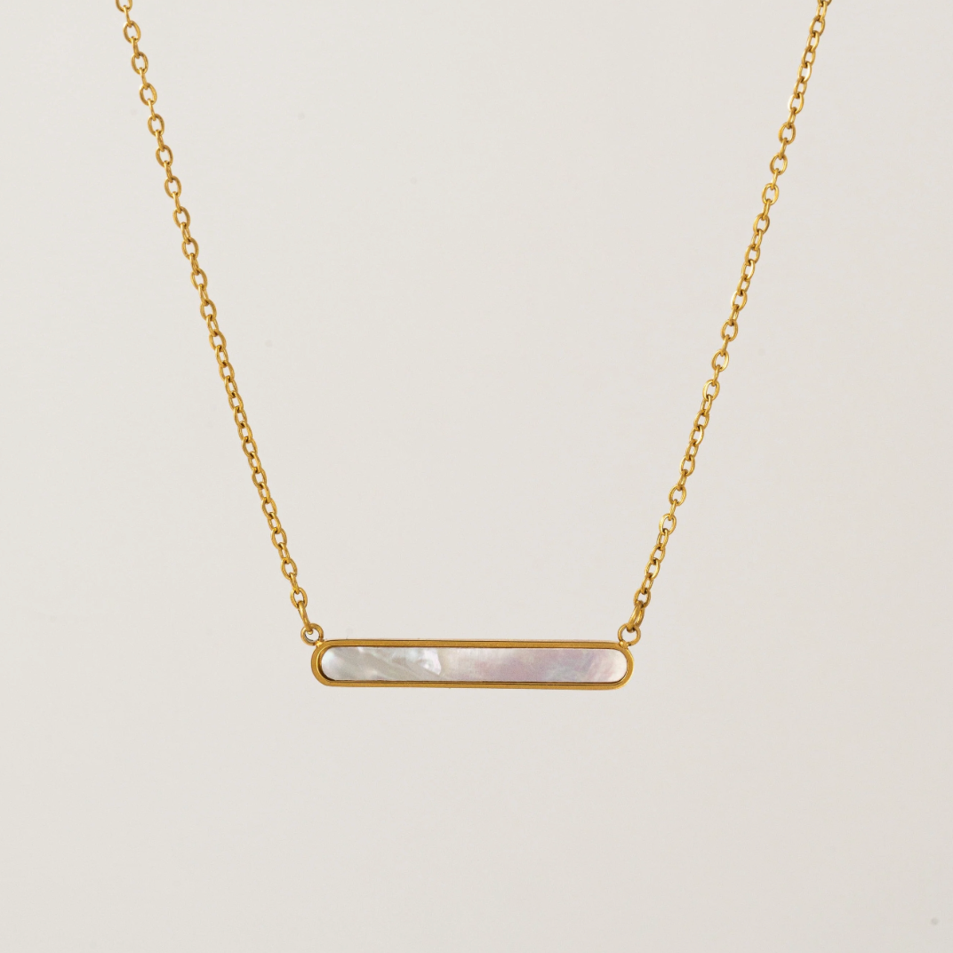 Inspired by the iconic coastline, natural shell is the focal point of this minimal bar necklace. Made with PVD and stainless steel, you can wear this waterproof necklace anywhere.