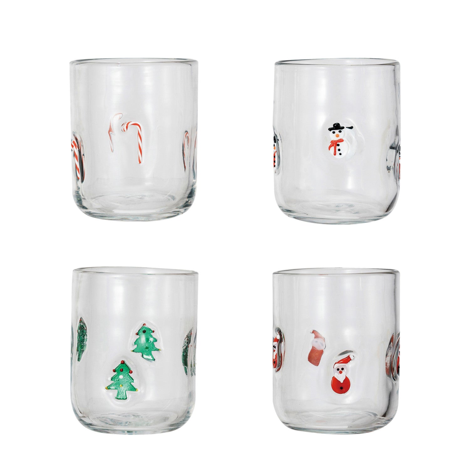 Add a festive touch to your drinks with these Embedded Holiday Icon Drinking Glasses. Perfect for serving warm coffee, tea, cocoa, or cider, each glass features one of four charming holiday designs: snowman, candy cane, Santa, or Christmas tree. Whether you’re sipping or displaying them, they bring playful holiday spirit to any table or shelf.