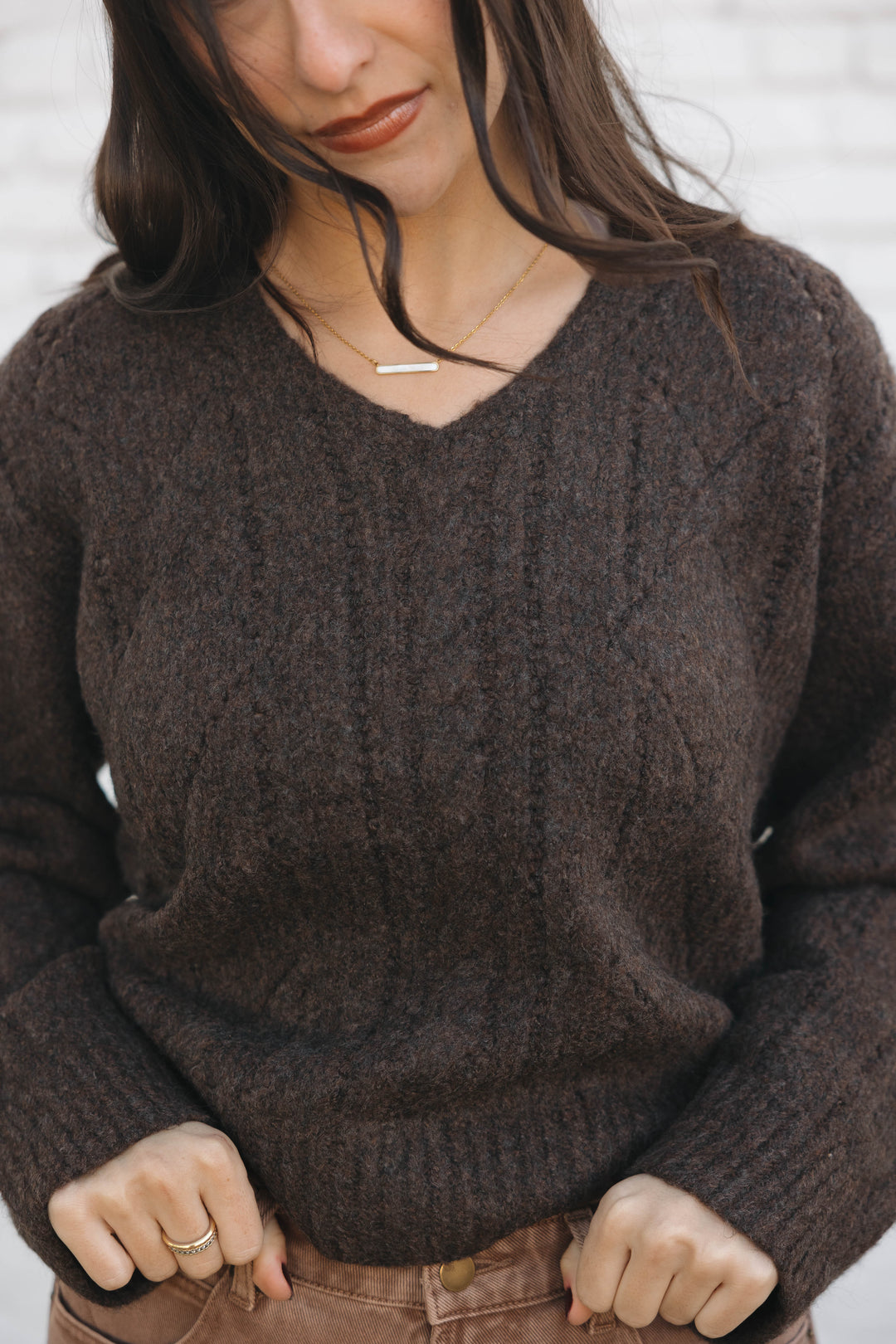 V-Neck Cable Sweater Top