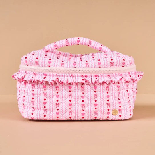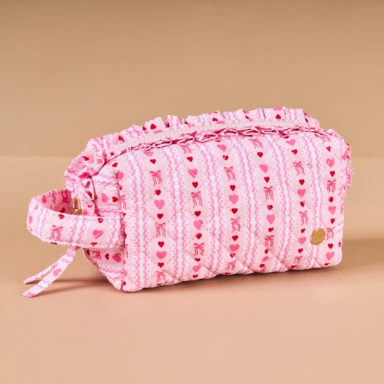 Pink Hearts and Bows Glam & Go Quilted Cosmetic Bag