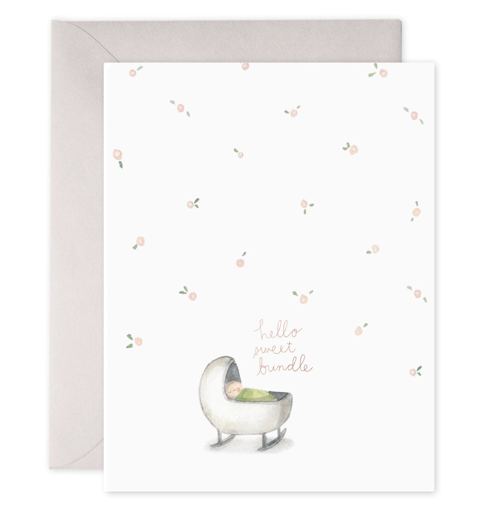 Each E. Frances card begins as an original watercolor painting, is then printed in brilliant color on luxe, heavyweight paper and is finally kissed with gold foil. All cards are blank inside and include an envelope.